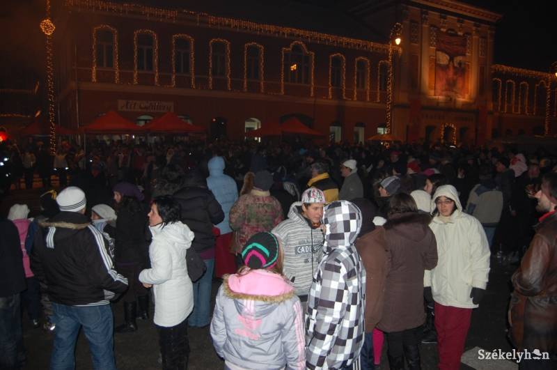 Éjfélkor Antal Árpád András polgármester újévköszöntője, a visszaszámlálás és az első tűzijáték után Homonyik Sándor lépett színpadra és csendültek fel az ismert dalok. Az egy órás koncertet követően ismét tűzijátékra került sor, ünnepelve a magyarországiak új évbe lépését is, majd Ősz Ferenc újabb szójátéka következett. A több ezer sepsiszentgyörgyi együtt bulizott az etno-rockot játszó Damned zenekarral, sokan a Szent György napi rendezvényhez hasonlították az utcai szilvesztert.
