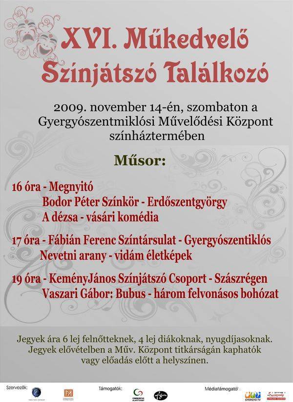 November 14-én, szombaton kerül sor Gyergyószentmiklóson - immár XVI. alkalommal - a Műkedvelő Színjátszók Találkozójára. A szervező Fábián Ferenc Színtársulat mellett a rendezvényen idén csupán egy vendég műkedvelő csoport előadását láthatja a közönség.