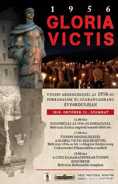 Csíkszereda Önkormányzata, a Magyar Köztársaság Csíkszeredai Főkonzulátusa és a Volt Politikai Foglyok Szövetsége idén is megemlékezik október 23-án az 1956-os magyar forradalom és szabadságharc áldozatairól.
