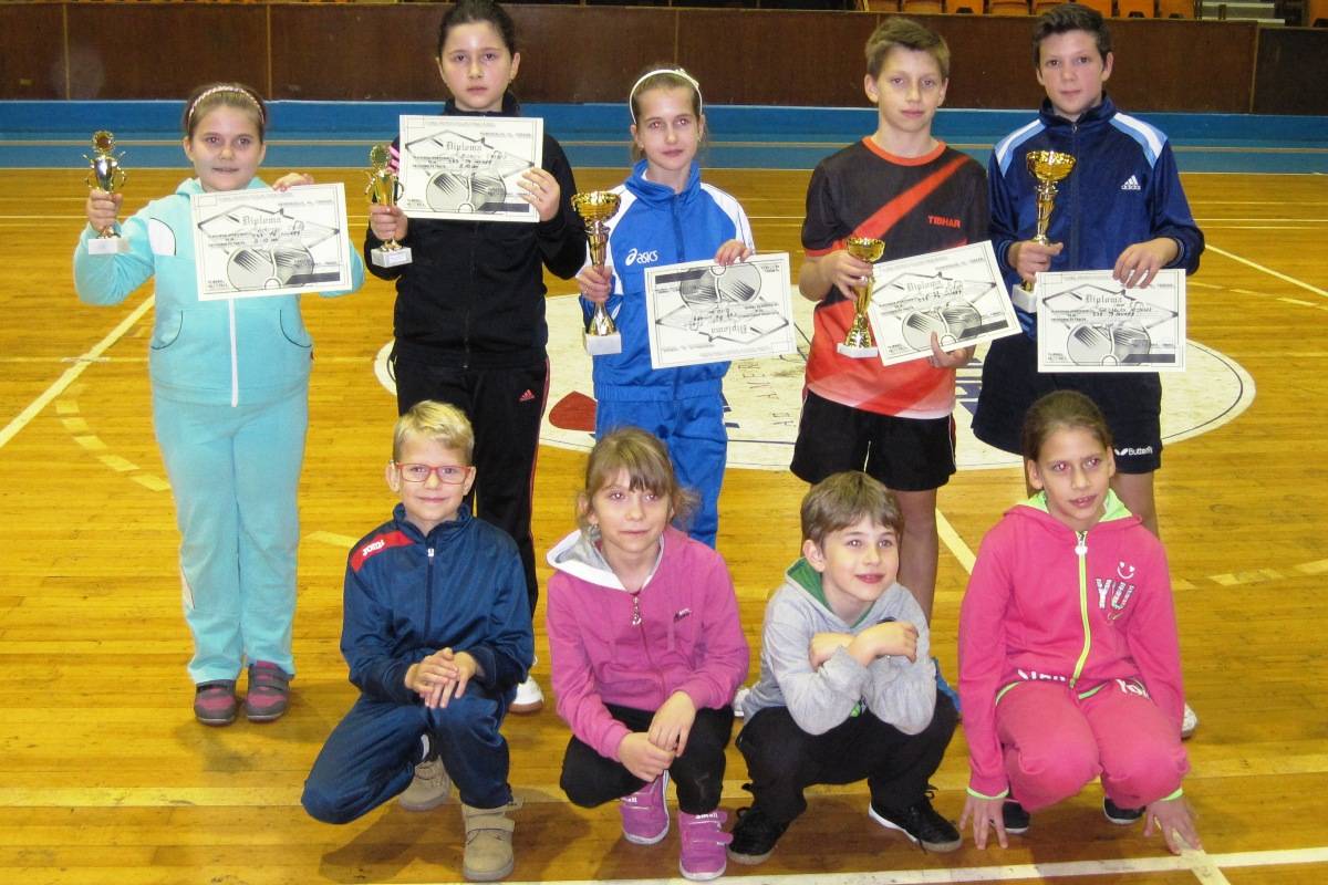 Két korcsoportban mérhették össze tudásukat a fiatal asztaliteniszezők: a lányok és a fiúk egyaránt a 8–10 és a 11–13 éves kategóriában bizonyíthattak. Előbbi korosztályban a lányoknál a Marosvásárhelyi ISK versenyzői közül hárman állhattak dobogóra: első helyen Ungvári Evelin végzett, Adorjáni Csilla és Cezara Boeriu harmadikok lettek, a második helyet a medgyesi Alina Moca szerezte meg. Utóbbi kategóriában a fiúk versenyében a marosvásárhelyi ISK-tól Oroszlány Richárd nyert, Kiss Zoltán pedig harmadik lett. Ebben a korcsoportban Cseke Alexandru az ötödik helyen végzett.