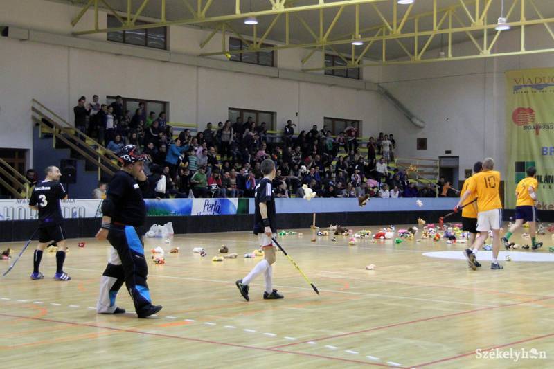 Különleges kezdeményezéssel próbálkoztak a székelyudvarhelyi teremhokisok. Ötletük kivitelezése sikeresnek bizonyult, hisz Dobj egy mackót a pályára! nevű akciójukban több százan vettek részt.
