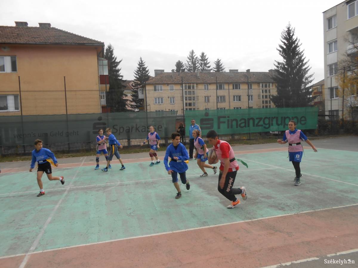 Ez a sportág az országos diákolimpiászok listáján is szerepel, de Hargita megyében csak most kezdték el játszani. A székelyudvarhelyi Tompa László Általános Iskola szervezésében lebonyolított vetélkedőn hét csapat vett részt, és a Román Rögbi Szövetség képviselője, Sorin Rus jelenlétében lejátszott csoportmérkőzéseken a következő eredmények születtek: salamási Szent András Általános Iskola lánycsapata–székelyudvarhelyi Tompa László Általános Iskola lánycsapata 15–5, székelyszentkirályi Szent István Általános Iskola–Tompa László fiúcsapat 10–20, salamási lánycsapat–székelyudvarhelyi Baczkamadarasi Kis Gergely Református Kollégium fiúcsapata 15–15, Székelyszentkirály–salamási fiúk 5–10, salamási lányok– csíkszentmihályi Arany János Általános Iskola 10–20, Tompa László fiúcsapat–salamási fiúcsapat 5–5, Baczkamadarasi–Csíkszentmihály 15–25. Elődöntő: Tompa László fiúcsapat–Baczkamadarasi 10–5 és salamási fiúk–Csíkszentmihály 30–15.