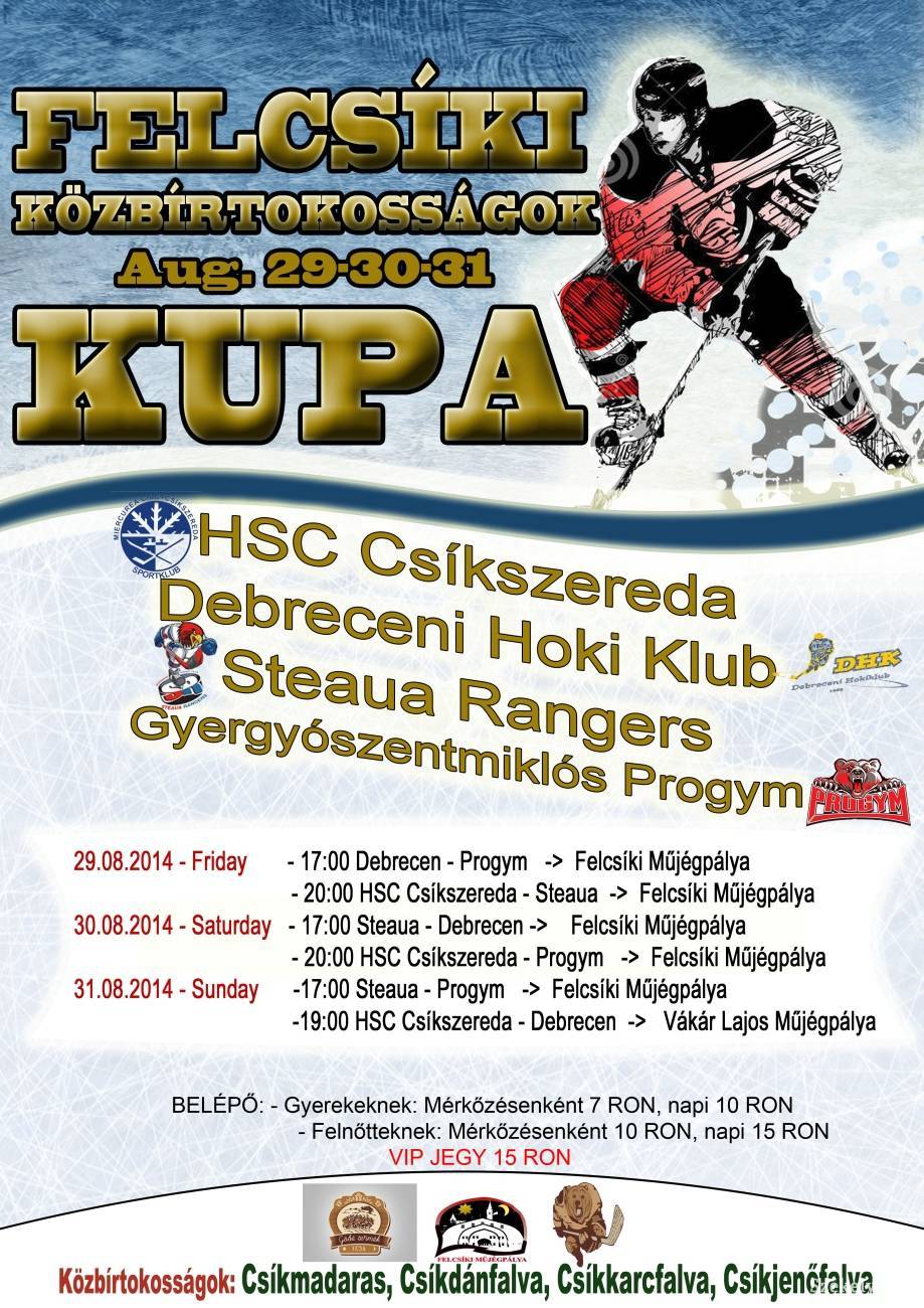 Az augusztus 29–31. között Csíkkarcfalván, a Felcsíki Műjégpályán zajló nemzetközi jégkorongtorna új neve Felcsíki Közbirtokosságok Kupája.