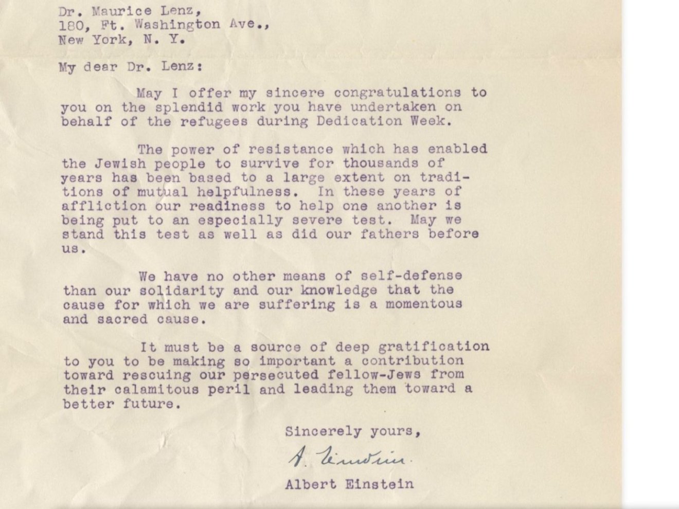 Einstein a levélben nem a tudománnyal foglalkozott, hanem gratulált a professzornak azért a nagyszerű munkájáért, amelynek köszönhetően sok zsidó menekültet sikerült megmenteni. Az ellenállás ereje, amely lehetővé tette a zsidók sok ezer éves fennmaradását, nagyrészt a kölcsönös segítségnyújtás hagyományaira épül. Nekünk is ki kell állnunk ezt a próbát, ahogy apáink tették előttünk" - írta barátjának.