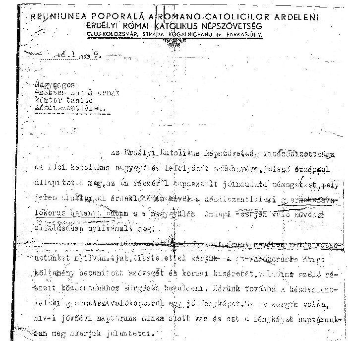 A jól sikerült szentléleki találkozót követően került sor aztán a csíkszeredai Katolikus Nagygyűlésre, amelynek keretében, július 2-án fellépett a Szakács Antal által vezetett kézdiszentléleki gyermekkar. Erről tanúskodik a mellékelt korabeli fotó, valamint egy fejléces papírra írt levélrészlet.