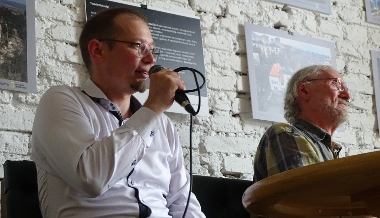 A tárlat összes képe Romániában készült, ezek közül kiemelte a Ló-havasi vízesésről (Románia legnagyobb vízesése – szerk.) készült képét, aminek a nagyságát az alatta álló ember „segítségével” érzékeltette. Háromszéken született alkotásai közül a sepsiszentgyörgyi Székely Nemzeti Múzeumról és a Vártemplomról készült drónfelvételeit említette. Színekben gazdagabb, bár szomorúbb történetű fotográfiáiról is mesélt, ilyen a szászavinci Kék-tó, amelynek sorsát a szerző Kelet-Európa egyik legnagyobb ökológiai katasztrófájaként aposztrofálta. Ugyebár a kommunista korszak alatt az egész falut elöntötte az Aranyos-völgyi bányából kitermelt salak, amit oda engedtek, s ma a falu helyén egy mérgező tó maradt csak.