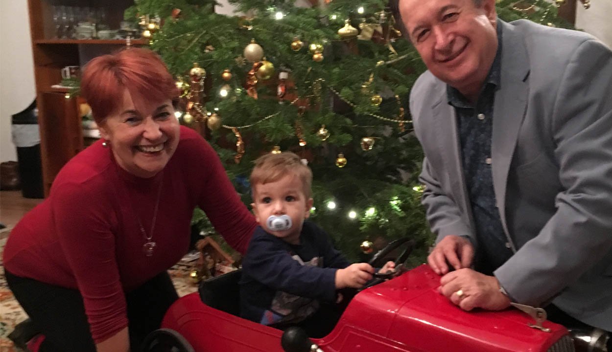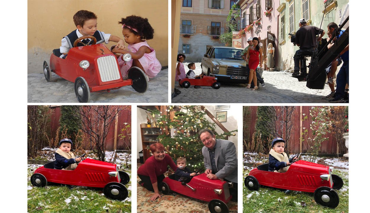 Annamarinak még van egy kis köze az autóhoz, mert mikor megszületett kisfia, Ádámka – igen, őt is így hívják –, mi nagyszülők elhatároztuk, hogy rendbe tetetjük a kocsit. Szomszédunk, Persinariu úr csodálatos Ferrari-pirosra festette, új kormányt öntött és így vártuk a karácsonyt. Hosszú, fárasztó utazás után érkezett meg a kis unokánk december 26-án Budapestről. Édesanyja ölébe húzódott, nem kommunikált senkivel, mindaddig, amíg észre nem vette a fa alatt a kocsicsodát. Villámgyorsan leugrott, beleült és ittléte alatt ez a „oldmobil” lett a legkedvesebb játéka, amelyről 68 év után ugyanazon a helyen készült újabb felvétel. Ez nem egy modern karácsonyi mese volt, hanem igaz családi történetfüzér, amint a képek bizonyítják. Hát, ez is egyfajta kontinuitás. Boldog Újévet minden kedves olvasómnak!