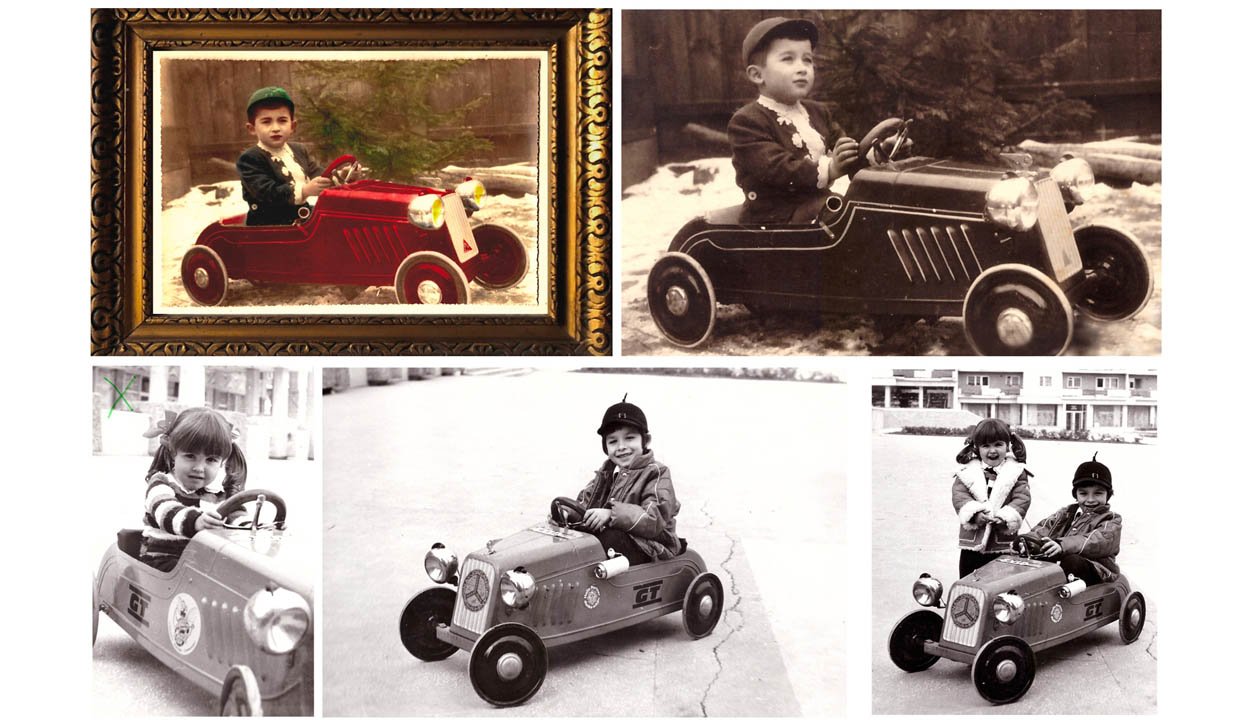 Az „álomkocsit” meg is kaptam karácsonyra, amint mesélték szüleim magamon kívül voltam az örömtől, az egyik legszebb karácsonyom volt azóta is, amennyire emlékszem. Persze a környékbeli barátaim nagyon szívesen jöttek hozzánk, mert kipróbálhatták az „élményt”. Aztán már január 10-én képek is készültek, és amíg szüleim éltek a kézzel kiszínezett, berámázott kép mindig a falon volt. Ahogy nőttem, két év múlva már nem fért el a lábam a hajtokán, közben Gegő úr elpanaszolta, hogy a fényképész biznisz aláment a piros autó hiányában és visszavásárolta két malac áráért. Máig sem tudom ez a „disznó-malac árfolyam” milyen pénznem volt, de tény, hogy szüleim mindig így mondták. A kiskocsit csak úgy kapta vissza régi tulajdonosa, hogy megígérte, amint befejezi a „praxist”, újra nekünk adja el. Mikor 1963-ban Marosvásárhelyre kerültem a zenetanári főiskolára, még a stúdió létezett és még mindig a fő attrakció az egykori kocsim volt.