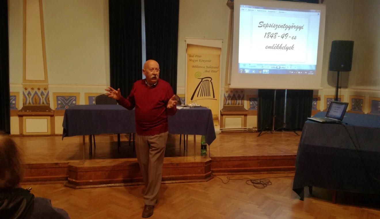 A központi ’48-as emlékmű „élete” is igen hányatott: 1874-ben készült el, a két világháború között ledöntötték, Andrei Mureșanu-szobrot terveztek a helyére, a kicsi magyar világban újra felállították, de az összetört oroszlánok helyébe csak 1972-ben, Sylvester Lajos közbenjárására készültek újak. Szomorú ténye a háromszéki forradalmi eseményeknek – ezzel Lőrinczi Dénes helytörténész, a megyei könyvtár munkatársa egészítette ki az elhangzottakat –, hogy a vármegye összes dokumentumát, amelyet a megyeházán tartottak, az 1849-ben bevonuló oroszok részben a Fügér-kerti kútba dobták, részben ösvényt raktak belőlük a főtérig, ahol máglyán elégettek mindent. Ezért Háromszék újkori és középkori története nehezen kutatható, sok ismeretlent rejt.