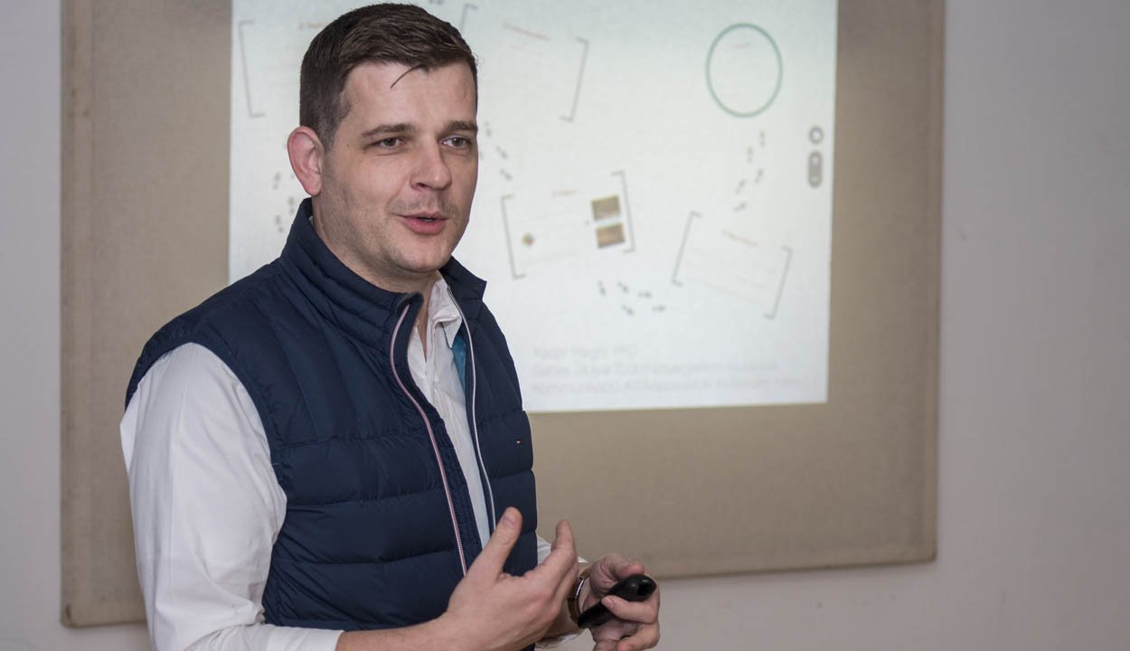 Dr. Kádár Magor egyetemi docens, kommunikációs szakember a városmárkázás fontosságáról beszélt, kiemelve: a városvezetőknek oda kell figyelniük arra, hogy mit mondanak el, és mit akarnak elmondani városukról, hiszen ez nagyban meghatározza megítélésüket. „Az nagyon jó, ha a városmárkázás folyamatának kezdetekor az adott városnak már van egy erős szimbóluma, ami köré építhetjük a városbrandet. Kézdivásárhely esetében egyértelműen Gábor Áronra és az udvarterekre helyeztük a hangsúlyt, hiszen a városvezetés ezeket nevezte meg a legfontosabb üzenethordozóknak” – mondta a szakember a téma kapcsán.