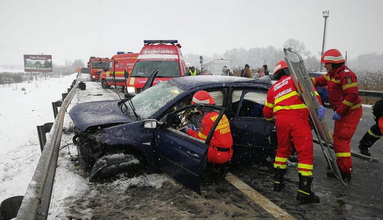 Súlyos baleset történt az elmúlt hétvégén Szeben megyében, amelyet egy előzéskor irányíthatatlanná vált gépkocsi okozott. A rendőrség felhívja a figyelmet arra, hogy a téli gumi önmagában nem elég, annak recemélysége megfelelő kell hogy legyen.
