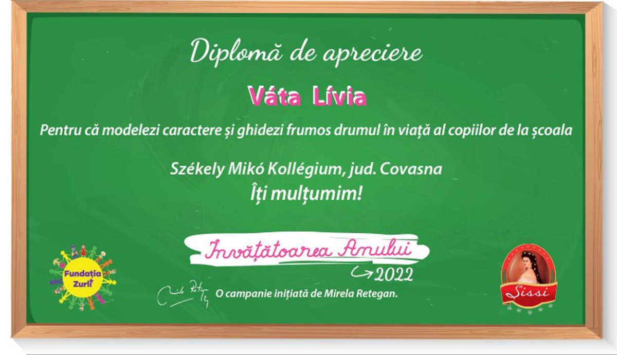 Hatodik éve szervezi meg a Zurli Alapítvány a legjobb tanítók versenyét, ami tulajdonképpen nem verseny, hanem egyfajta elismerés. Az alapítvány által működtetett honlapon diákok, szülők nevezhetik be a kedvenc tanítójukat, méltathatják néhány sorban a tevékenységüket, kifejezhetik hálájukat. „Egy igazán jó tanító egész életünkben elkísér, akkor is, amikor már nem fogja a kezünket, ezért nagyon fontos az elismerés, amit már a nevezés is megmutat, hiszen nagyon sok pedagógust jelöltek többször is a szülők” – mondta Mirela Retegan alapítványi elnök, kampányszervező.