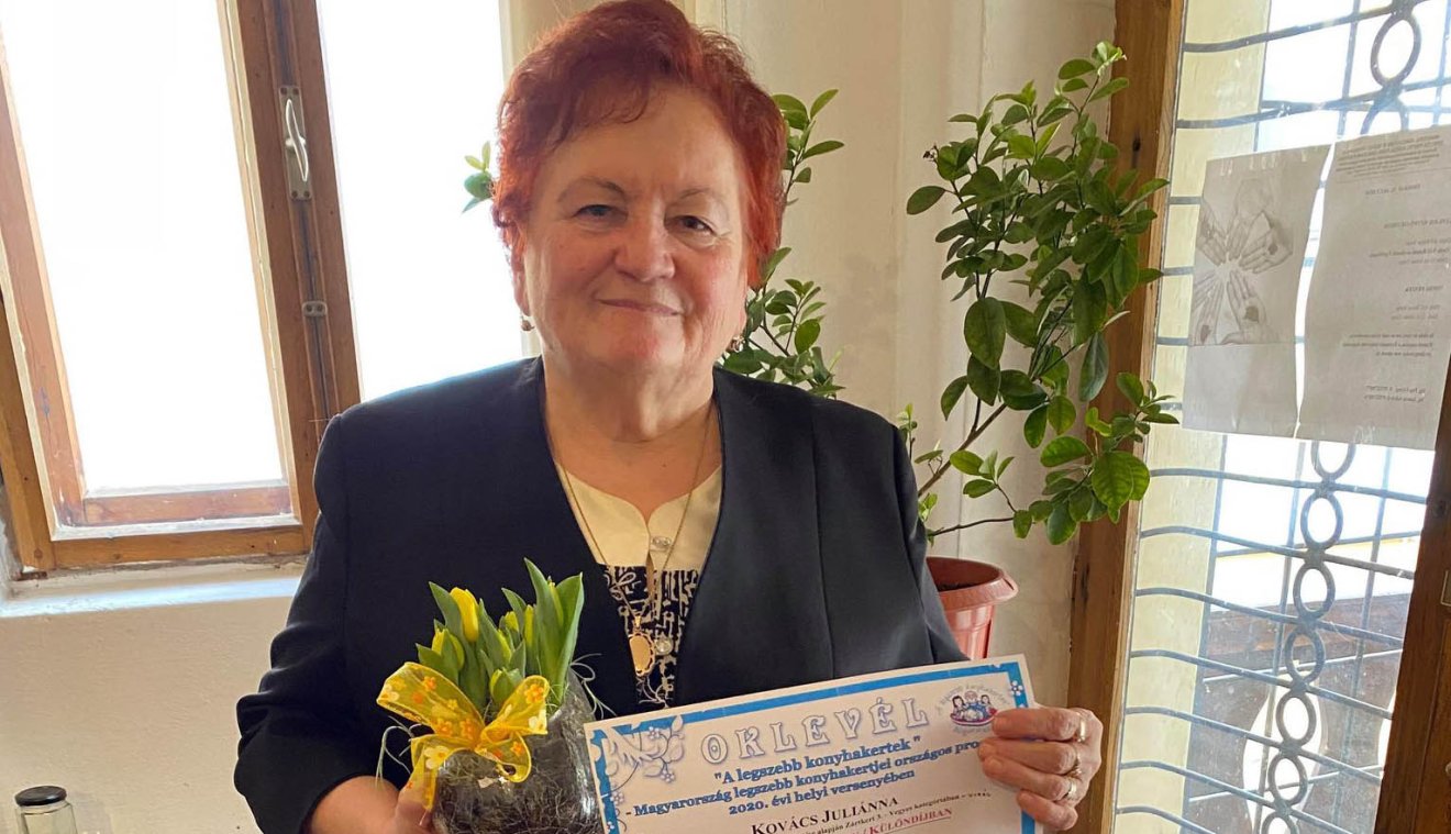 A tavaly októberre tervezett ünnepélyes díjkiosztó a pandémia miatt elmaradt, a hamarosan 73. életévét betöltő kertművelő nemrég kapta meg az okleveleket Jancsó Szilvia kertészmérnöktől, a Székelyföldi Bio Egyesület képviselőjétől. Kovács Juliánna nem először részesült a megtiszteltetésben, 2017-ben második, 2018-ban pedig első helyezett lett ugyanebben a versenyben, 2019-ben pedig különdíjat kapott.