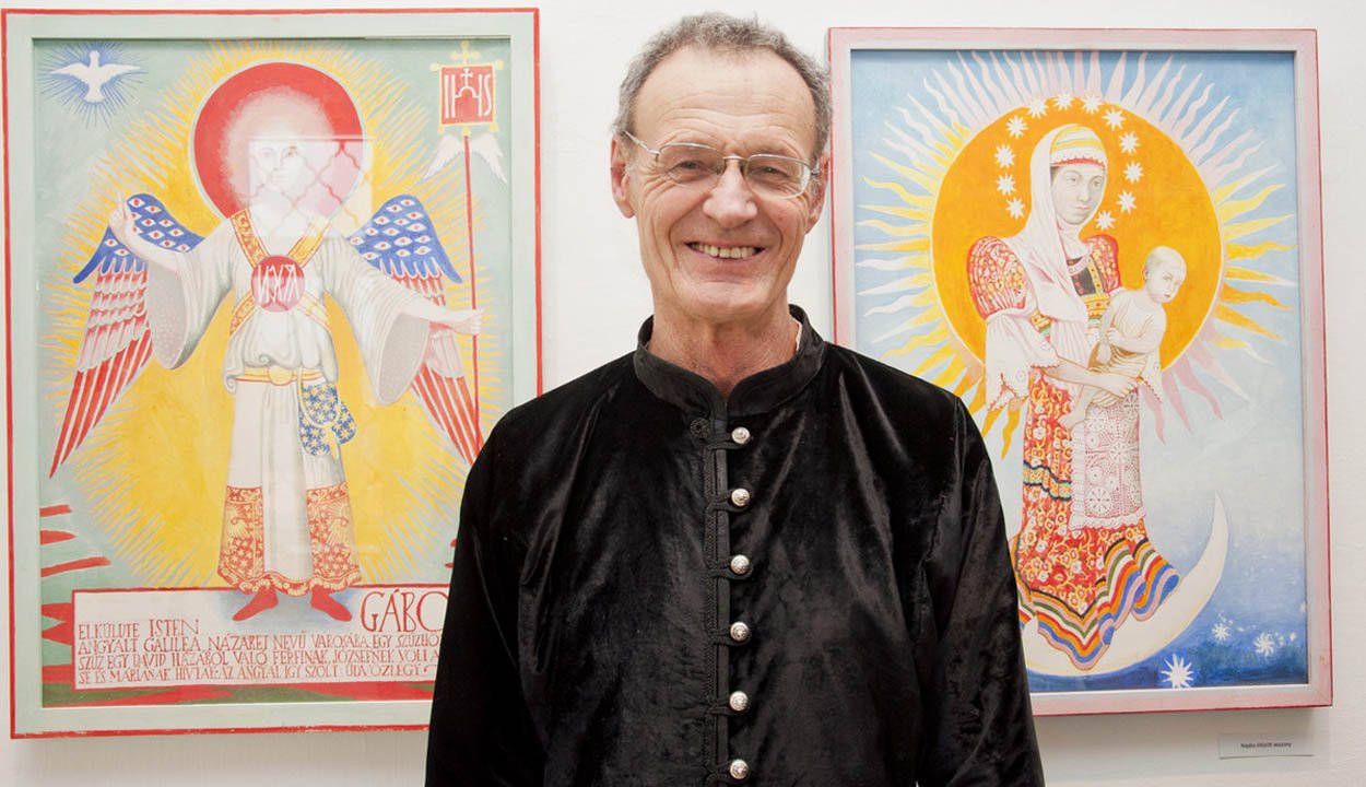 Életútja is rendhagyó: Budapesten született, nagyvárosban nőtt fel, teológiát is végzett, aztán egyik napról a másikra áttér a földművelő paraszt kőkemény életvitelére, miközben alkot is minden nap, ahogyan a hívő ember imádkozik.