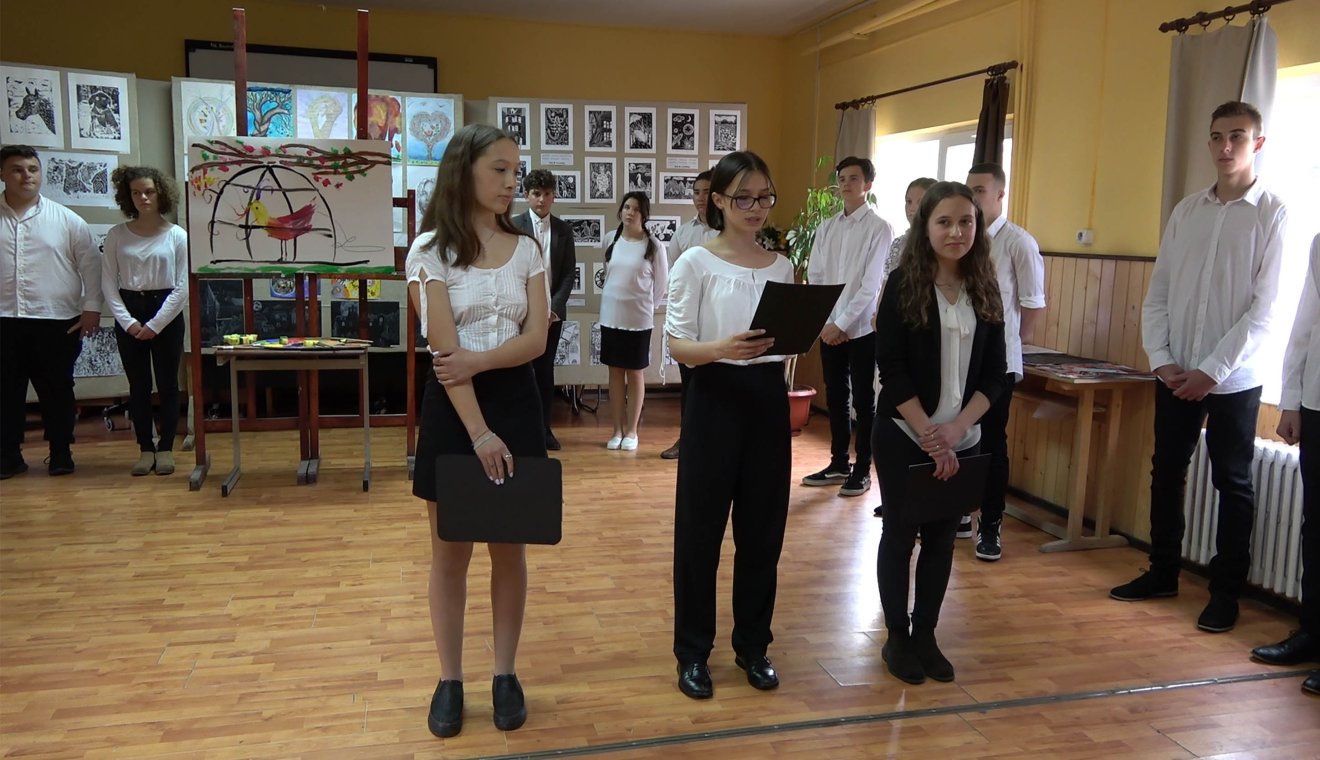 A nyolcadikosok nevében Barabás Panna Rozália, Ercse Réka és Molnár Panna mondott búcsúbeszédet, köszönetet a tanáraiknak, majd Ferencz Éva tanárnő méltatta a közszemlére helyezett mintegy száz rajzot, festményt, plasztikát és domborművet. A rajztagozatos diákokkal Györgyjakab Boróka, Szász Edit és Koszta Ervin művésztanárok foglalkoztak az elmúlt négy évben.