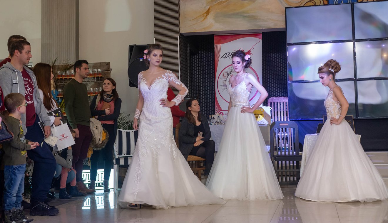 Az esküvőexpó elmaradhatatlan része a menyasszonyiruha-parádé, de a programot ezúttal alkalmi ruha- és koszorúslányruha-bemutató is gazdagította. Egy ilyen felvonulásnak része lenni megtiszteltetés, és mivel Szentgyörgyön nincs modelliskola, a ruhaszalonok önkéntesek segítségével oldják meg ezt a feladatot. Bevállalós, fiatal, magas, csinos lányokat keresnek, karakteres arccal, tiszta bőrrel, hogy szépen kisminkelhetők legyenek, mondta Chindea Éva kozmetikus. Lehetőleg hosszú, lehetőleg világos hajjal, mert ilyenkor a frizura is mutatósabb Tribel Yvette fodrász szerint. Feltétel még, hogy tudjon az illető magas sarkúban járni, ez tartást ad a ruhához. Sminkes, fodrász és ruhás összmunkájának végeredménye az az önbizalom és kellem, amit a lányok keresnek a parádéban. Ezért áldozatot is hoznak: több mint egy órát tart egy alkalmi smink, legalább annyit a frizurakészítés.
