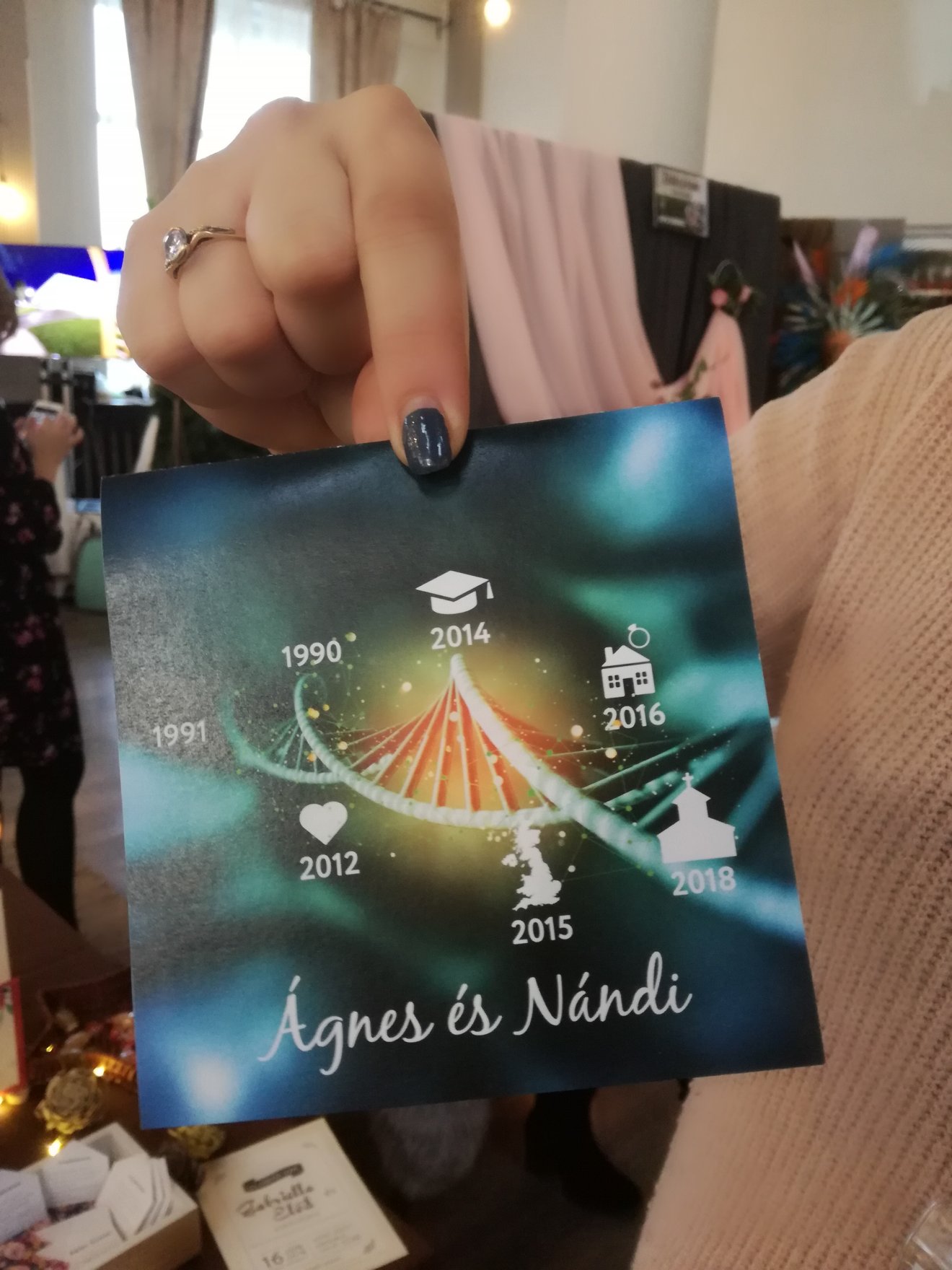 Az idei év színe a living korall, divatos még a sárgás arany is a virágdekorációban, mondta Orbán Kinga, az esküvői dekorációkkal foglalkozó Pure Deco egzotikus standjánál. De sosem a trend számít, csak az egyéni ízlés! Ezt erősíti meg az egyedi meghívókat, de ültetésrend, ajándékkártya megtervezésével egységes arculatot is kínáló Vad Kata (Creative Wed Design) is. Teret nyernek az egyszerű, letisztult kártyák, boríték nélkül is, illetve a pontos programmal, fotókkal kombinált meghívók is, amelyekkel vissza lehet jelezni, ha valaki allergiás valamilyen összetevőre, esetleg vegán, laktóz- vagy gluténmentes menüt kér.