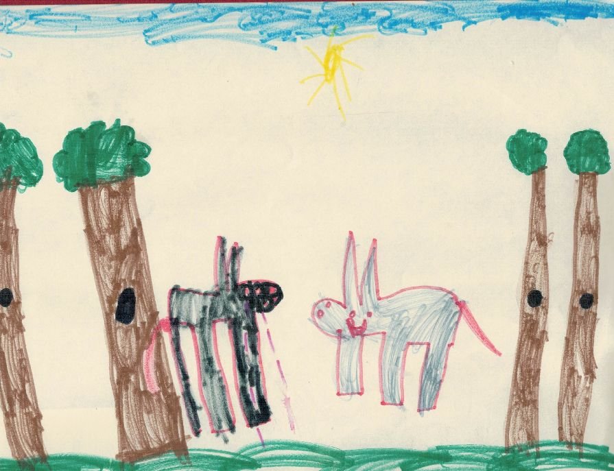 Történt egy nap, hogy ez a kis csikó elbújt, amíg a szülei a friss forrásvizet kortyolgatták az erdő szélén. Aztán bennebb és bennebb merészkedett az erdőbe, ami egyre félelmetesebbnek tűnt. Szaladt, szaladt, de nem találta a visszautat, nagyon megijedt, és elkezdett sírni: