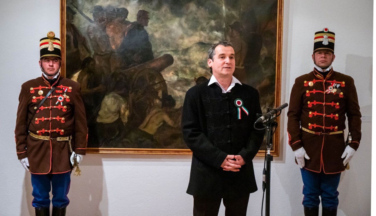 Az új tárlat darabjait dr. Bordás Beáta kolozsvári történész hozta közelebb a megnyitót a Facebook-közvetítés követőihez. Húsz képzőművészeti alkotás, közel ugyanennyi eddig egyáltalán vagy régen be nem mutatott tárgy által élhetik bele magukat az érdeklődők a ’48-as korhangulatba, a szabadságharc légkörébe, melyet Miklóssy Gábor is megörökített, fogalmazott a történész. Az első alkalommal bemutatott hatalmas kompozíció, melynek középpontjában Gábor Áron áll az általa öntött ágyú mellett, ugyanakkor egyértelmű állásfoglalás a szabadságharc mellett. Ez a festmény lesz majd a Székely Nemzeti Múzeum felújítása után berendezett 48-as kiállítás egyik legfontosabb darabja, hangzott el.