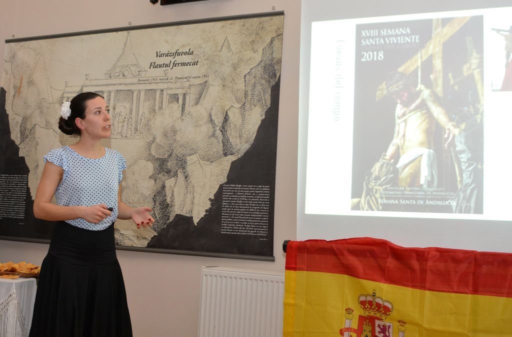 A Zöld Nap Egyesület által szervezett tizennegyedik nemzeti est sorozat jelenlévőit Ráduly Attila a szervezet elnöke köszöntötte, majd Isabel Fernandez spanyol és Haykuhi Harutyunian örmény EVS-önkéntesek egy flamenco tánccal nyitották meg az eseményt. Az egyesület spanyol önkéntesének köszönhetően a résztvevők virtuálisan találkozhattak azokkal a turisztikai látványosságokkal, amelyek nem annyira ismertek, de annál szebbek. A bő egyórás, vetített képekkel, kisfilmekkel tarkított előadásban előbb az ország történelméről szólt röviden, majd Andalúzia térséget mutatta be Isabel, a Don’t trash our future projekt önkéntese. Külön kitért a tartomány nevének magyarázatára is, ami a középkori arab mór megszállók által létrehozott állam, al-Andalúsz nevéből származik.