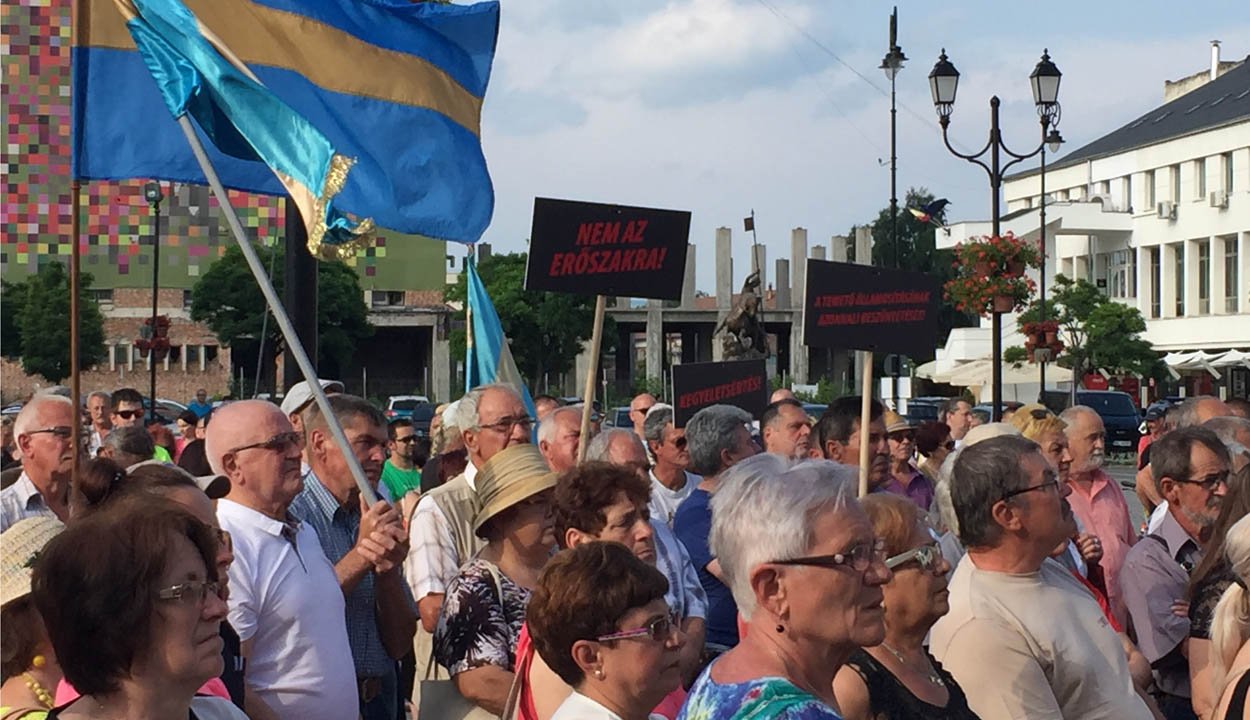 Sepsiszentgyörgy főterén több százan gyűltek össze a tüntetésre, igaz, a megmozdulás elején a tömeg szétszéledt az árnyékba, de a felszólalókat már tömött sorokban hallgatták. Elsőként Benedek Erika, az EMNP háromszéki képviselője lépett a pódiumra, aki kiemelte, a hatóságok nemcsak a magyar múltat, emberi méltóságot nem tartják tiszteletben, de önmaguk méltóságát sem. Hangsúlyozta, Romániának nem volt elegendő az elmúlt száz év sem, hogy magáénak érezze a határai között húzódó területeket, ezért a román megyék „körülharapdálják” a magyar megyéket, ami szimbolikus térfoglalást jelent. A néppárti politikus kifejtette: szomorú, hogy 2019-ben Románia nem egy egységes törvények alapján működő jogállam, így nem jó itt magyarnak lenni, de nem jó románnak vagy más nemzetiségűnek lenni sem.