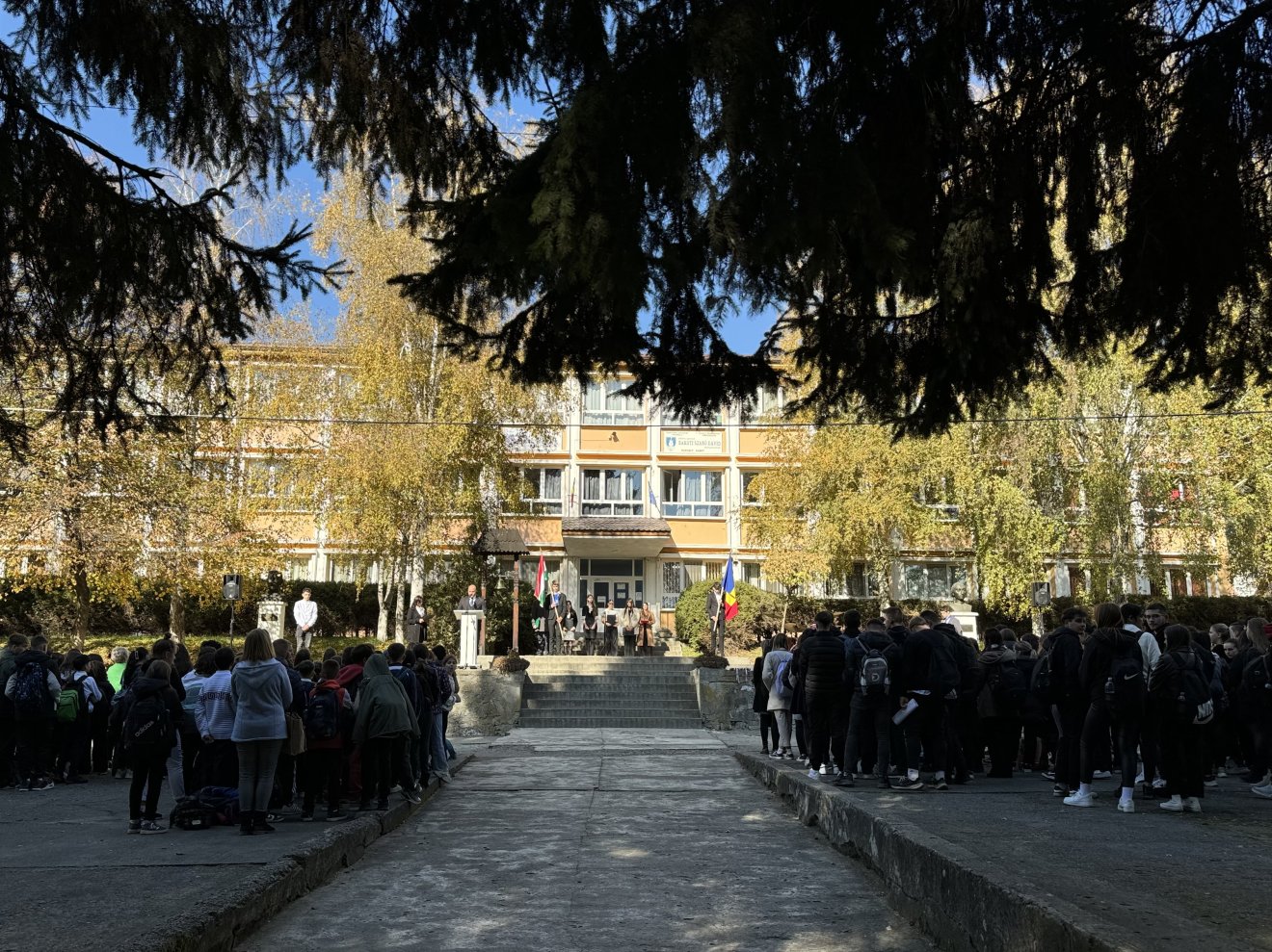A Baróti Szabó Dávid Technológiai Líceum diáktanácsa és nevelőtestülete szervezésében zajlott megemlékezésen benépesült az udvar.