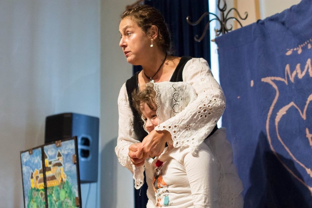 A felvidéki Écsi Gyöngyi két meseelőadással érkezett a Szent György Napokra. Mindkét produkcióban a zenének, az ízes népi nyelvnek, a mozgásnak és a kellékeknek, eszközöknek egyforma súlyuk, szerepük van. Meséi nemcsak a gyerekekhez szólnak, hanem a felnőttek számára is fontos üzenetet hordoznak, utat mutatnak. Az előadóval a bábszínházzal való találkozásáról, a népmesék időtálló üzenetéről beszélgettem.