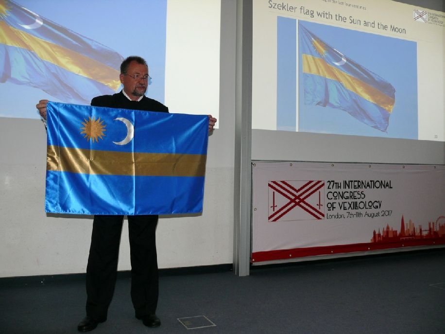 Nagysikerű előadást tartott Székelyföldről és a székely zászlóról Londonban dr. Szekeres Attila heraldikus. Az augusztus 7-e és 11-e között sorra került Zászlótudományi Világkongresszusnak mintegy száz résztvevője volt a világ minden tájáról.