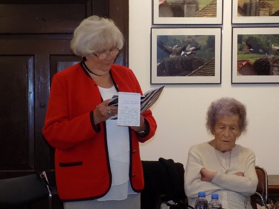 Radványi Hajnal nemcsak az irodalmat kedvelőket örvendeztette meg a különleges könyvcsemegékkel, de időutazásra is invitálta a résztvevőket a múlt század harmincas éveibe, azokba a szép időkbe, amikor a gyermekkor, így az ő gyermekkora is, nem számítógépből és mobiltelefonokból állt, hanem napsütésből, erdei sétákból, emberi méltóságból, sok közös élményből, valódi boldogságból. Babi néni felidézte azokat az időket, amikor a bibarcfalvi (akkor még csodák csodájára működő és sokak által látogatott) fürdőre lóbusszal, vagyis lovaskocsival mentek fel a barótiak (Lóbusz a címe novelláskötetének is – szerz. megj.), emlékeztetett dédnagyapjára, akinek szeszgyára volt Baróton, nagyapjára, aki a Brassói Lapoknak volt tulajdonosa. Baróti egybélije, szomszédja és egyben legjobb barátnője volt az idén elhunyt Tomsa Jolán, vagyis Tomsa Babika néni, akire szeretettel emlékezett, és arról is mesélt, hogy miként vallott szerelmet neki 60 éves kortárstalálkozójukon neves halbiológus osztálytársa, a szintén baróti születésű, és szintén elhunyt Kászoni Zoli bácsi.