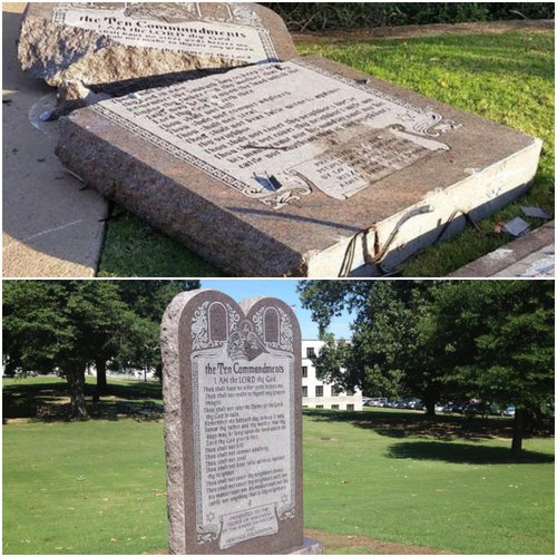 A Baphomet-szobor azonban nem maradhatott a téren, utólag el kellett távolítsák. 2017 óta a déli államban köztéri alkotást csak a törvényhozók támogatásával emelhetnek. És egyelőre hiába is tiltakoznak, mert a szabályt - látva a vallásháborús ellenreakciókat - éppen a Tízparancsolat Emlékmű védelmére szabták a törvényohozók. A Mózes törvénykönyvét idéző emlékmű ugyanis eredetileg egy hívő republikánus szenátor ötletéből és támogatásával jött létre. Talán éppen ezért, de sokak szemét szúrta, és a vita annyira elfajult, hogy tavaly egy polgár autóval hajtott neki az alig néhány órája leleplezett emlékműnek. Ugyanez a személy korábban egy hasonló, de az oklahomai parlament elé felállított térplasztikát is megrongált.