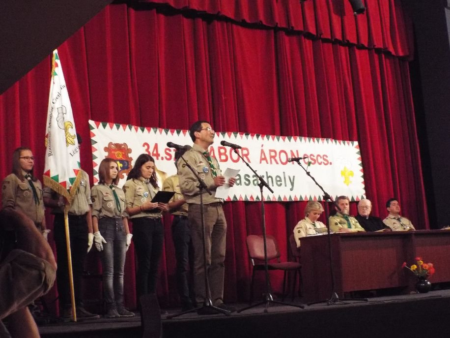 Üdvözölték a számos jelenlevő vendégcsapatot, és azokat is, akik csak köszöntésüket küldhették, Babos Abigél csengő énekét követően Székely István körzetvezető kapott szót, elmondta: 1992-ben találkozott a cserkészettel, és megható látnia a teremben a sok száz háromszögű cserkésznyakkendőt. Ezért Istené a dicsőség, hiszen nélküle nem létezik semmi, vallotta meggyőződéssel. Nánia Hilda szavalata után Vas József, azaz Jóska bá idézte fel a kezdeteket, a szép és küzdelmes emlékeket egyaránt, hiszen utóbbiakról is szólni kell, azért, hogy a maiak értékelni tudják a 90-es években a semmiből megteremtett cserkészmozgalmat. 1992-ben került „hivatalos pecsét” a megalakulási iratokra, ám a munka már két évvel korábban megkezdődött.