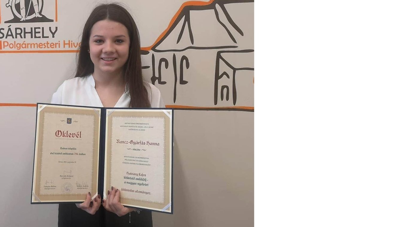 Kézdivásárhely testvérvárosa, Hatvan minden évben díjazza azokat a testvérvárosaiban élő diákokat, akik kimagasló eredményt érnek el a magyar nyelv művelésében és tanulásában. Idén a céhes városból Rancz-Gyárfás Hanna részesült a Hatvany Lajos-kitüntetésben, amit a napokban kaptak kézhez.