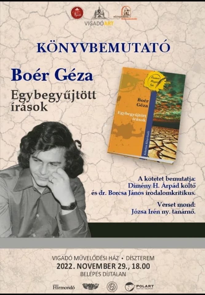 Boér Géza költő és kritikus Kézdivásárhelyen középiskolai tanárként dolgozott 1975–1989 között. Hetven évvel ezelőtt, 1952. március 13-án született Torján, s ugyanitt temették el 1989. január 26-án.