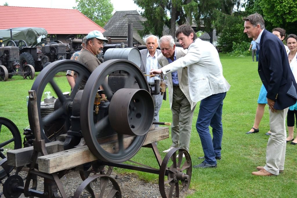 A brit trónörököst elbűvölte a skanzen sokszínűsége, közel másfél órát időzött ott a háziak kalauzolásában. A múzeumi gyűjteményt Haszmann Pál és D. Haszmann Orsolya ismertette, az alapkiállításnak otthont adó kúriánál pedig a tulajdonos Damokos testvérek, Csaba és Zsolt fogadta és köszöntötte a királyi sarjat.
