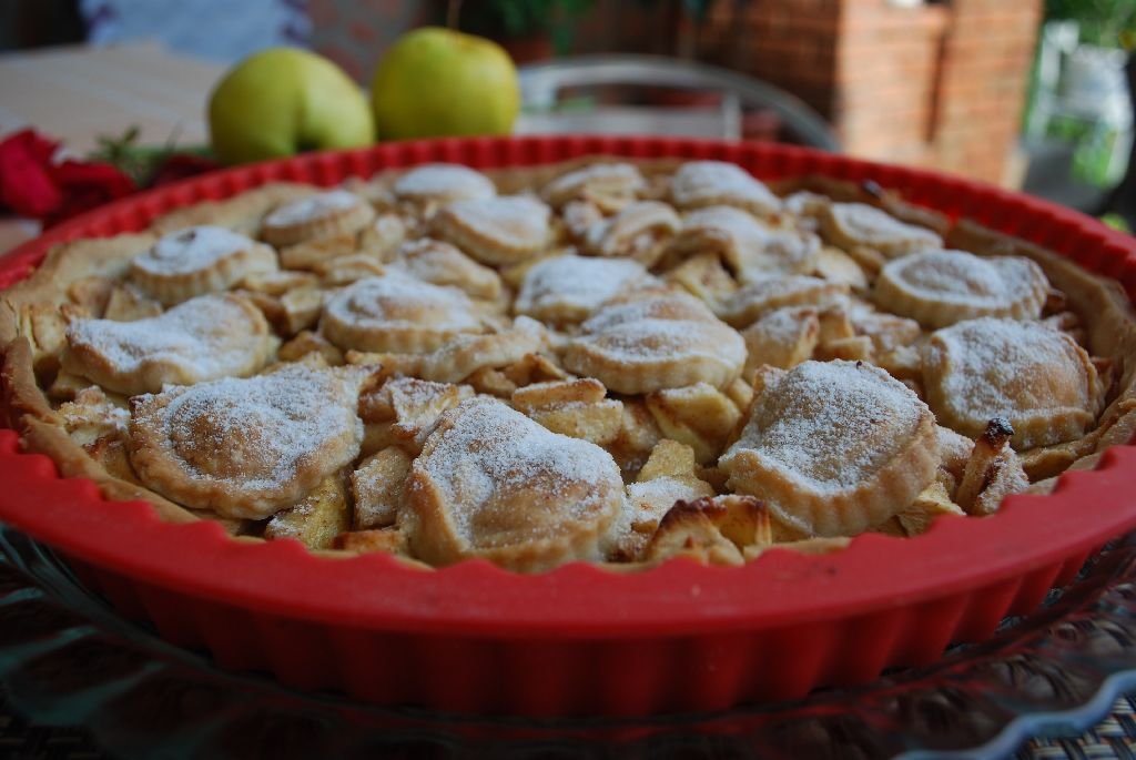 A fél kiló gyümölcsöt összekeverem 2–3 evőkanál cukorral, 1 evőkanál pudingporral, vagy kukoricakeményítővel, melynek szerepe a kifolyt gyümölcslé zselésítése. A tészta alapanyagaival (25 dkg liszt, 10 dkg cukor, 1 tk sütőpor, 10 dkg vaj, 2 tojás, 1,5 dl tejszín) nem árt gyorsan dolgozni, minél hidegebb marad a vaj, annál omlósabb lesz a végeredmény. Rákanalazom a gyümölcsre, megszórom barna cukorral, majd 170 fokon, kb. 40 perc alatt megsütöm.