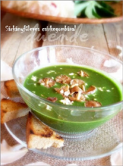 Hozzávalók (4 főre): 1 nagyobbacska csokor csalánlevél, 1 kis kupac szegfűgomba, 4–5 fej fokhagyma, 2 dkg vaj, só, 1 csapott teáskanál kristálycukor, zöldség- vagy erőleves, 2 dl sűrített tej, 1 evőkanálnyi liszt, rozskenyér.
