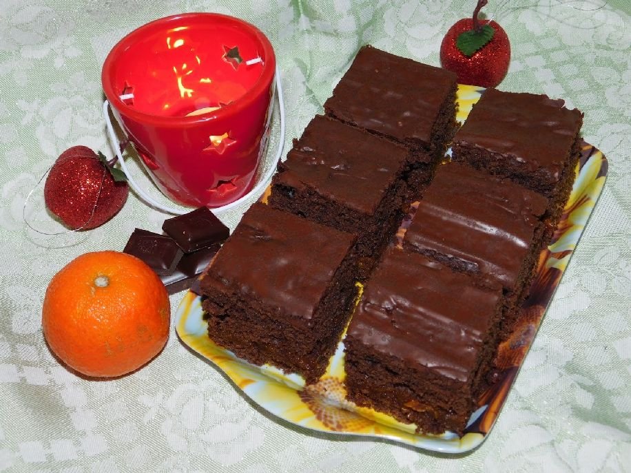 Így készült: a tojásokat a cukorral, vaníliás cukorral alaposan elkevertem. Hozzáadtam a megolvasztott margarint, majd a lisztet, sütőport, kakaót, tejet, narancshéjat és levet. Alaposan összekavartam. A masszát sütőpapírral bélelt, 26×32 cm-es tepsibe simítottam. Tűpróbáig sütöttem. Kihűlés után vízszintesen kettévágtam, lekvárral kentem. A gőz fölött az olajban felolvasztott csokival bevontam a tetejét. Dermedés után szeleteltem. Finom, puha, egyszerű és nagyszerű süti. (http://gerdisuti.blogspot.ro/)