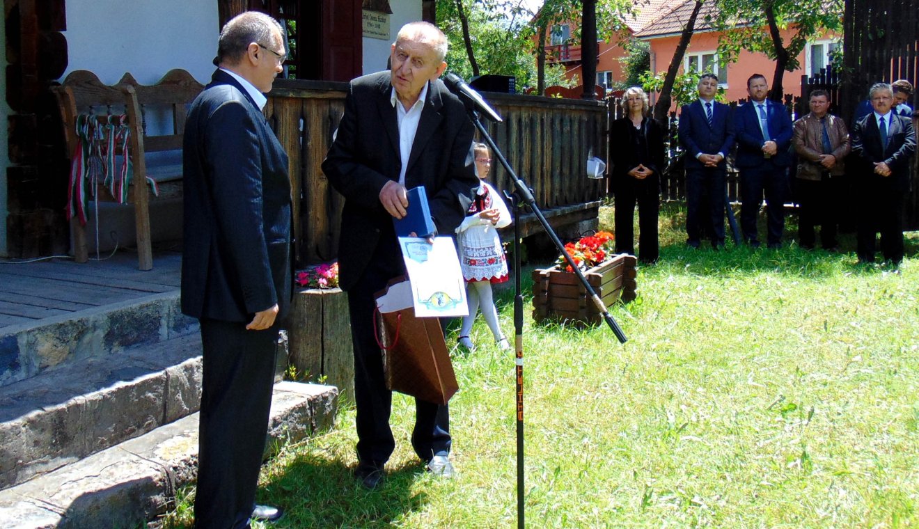A Kőrösi Csoma Sándor-emlékérmet az egyesület alapítója, elnöke és lelke adta át a szülőfaluban álló emlékház udvarán. Dr. Nagy Lajos ez alkalomból írt méltató mondatait Ferencz Éva tanárnő olvasta fel.