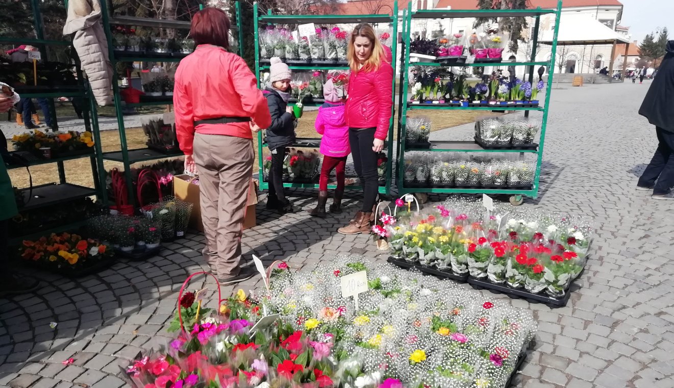 Nőnapi virágvásárt szerveztek Sepsiszentgyörgy főterén.
