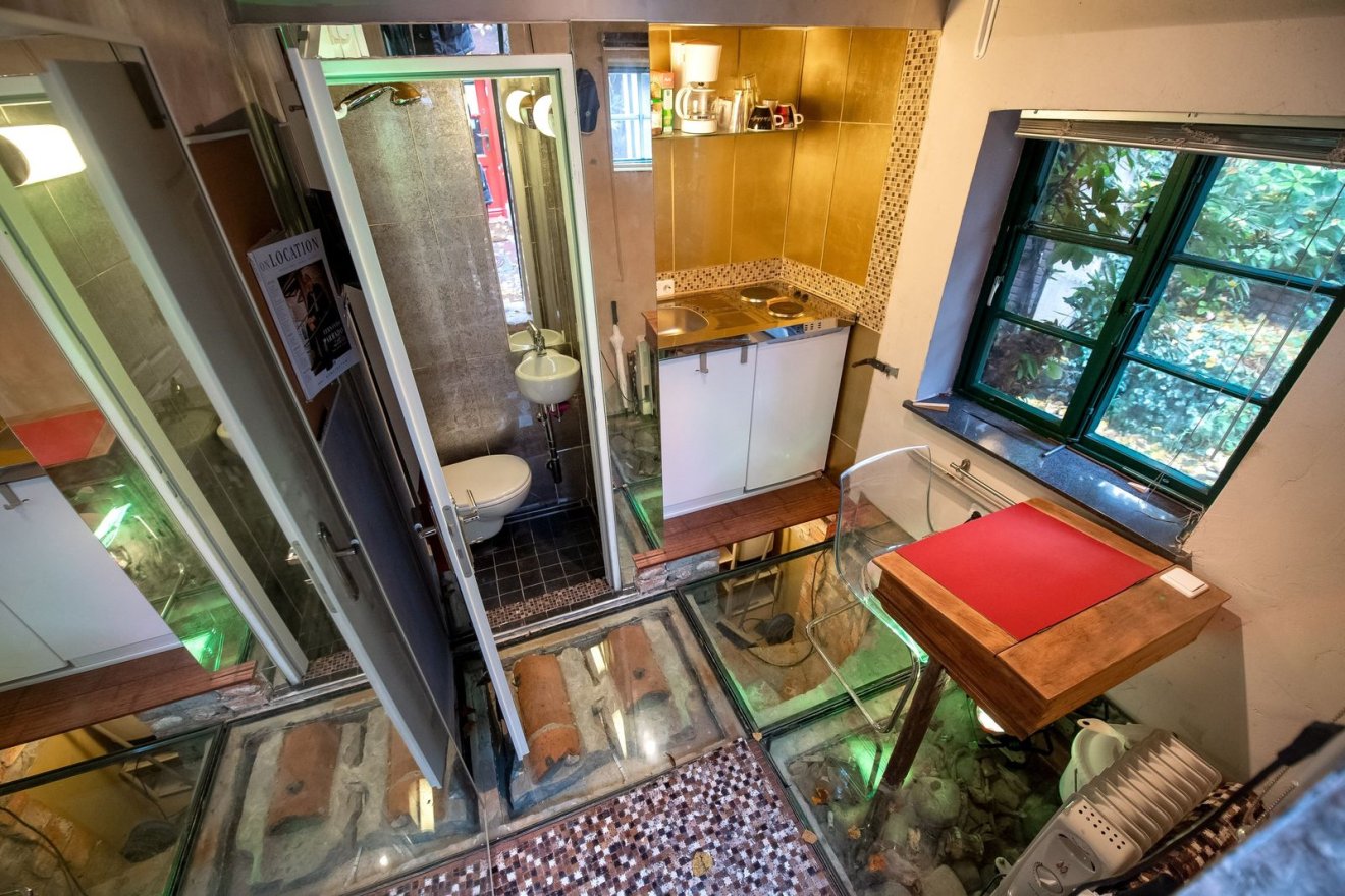 A hét négyzetméteres területen fekvő, egy szintes lakás a város régi központjában található, apró mérete ellenére van benne fürdőszoba, ebédlő és egy kis alvó rész is, az épület tetején pedig egy kis terasz is található.