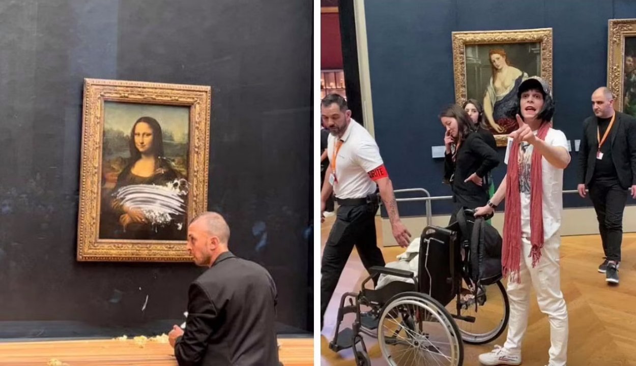 Tortával dobták meg a Mona Lisát vasárnap a párizsi Louvre múzeumban. A szemtanúk elmondása szerint az elkövető egy kerekesszékes férfi volt, aki parókát viselt. A többi vendég meglepetésére hirtelen felállt, és a világ leghíresebb festménye felé közeledett, majd hozzávágta a tortát, mely szétkenődött a festményt védő üvegfalon.