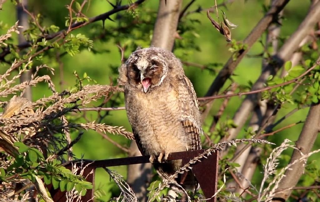 Napok óta lehet hallani éjjelenként az erdei fülesbagoly fiókáinak szerenádját. Éles, sipákoló, élelemkérő hangjuk messze elhallatszik. A kis fülesbagoly-fiókák még azelőtt elhagyják a fészket, hogy röpülni tudnának, és a környéken szétszóródva ágon-bokron, vagy épp a földön meghúzódva várják az estét – ugyanis a baglyok éjszakai életmódot folytatnak.