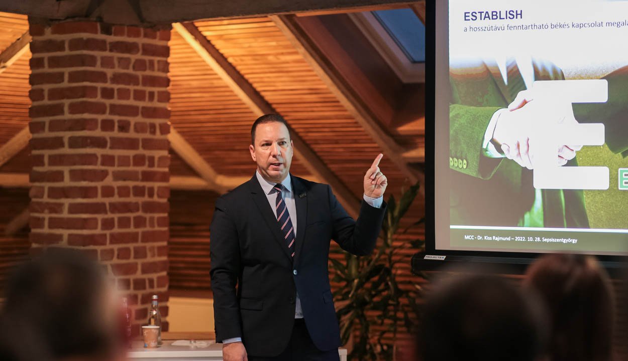 A diplomácia szerepe a háborúban címmel tartott az orosz-ukrán hadakozás fejleményeit, valamint összefüggéseit felvillantó előadást a téma szakértője, dr. Kiss Rajmund nagykövet, a Mathias Corvinus Collegium (MCC) óraadója október 28-án, pénteken a sepsiszentgyörgyi Fidelitas Hotel konferenciatermében.