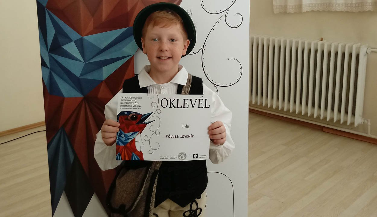 – Én már így „kaptam” Leventét, hiszen amikor előkészítőbe jött, akkor már I. díjas volt az óvodásoknak szervezett mesemondó verseny megyei szakaszán, országos szakasz nincs. Már akkor a legjobb mesemondó volt. Az én dolgom az volt, hogy tovább ápoljam-dédelgessem benne ezt a kincset – mondta Páll Mária tanítónő.