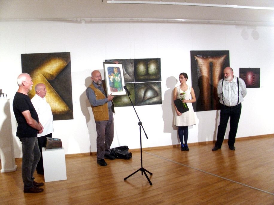 Vinczeffy mellett, az erdélyi művészet nagy mesterének nevezte a társaság másik tagját, Kuti Dénest is, akinek „az alkotásai fotográfiaszerűen tárják elénk az élet rezdüléseit, sokszor jelentéktelennek, mindennaposnak mondható elemeit.” Közéjük tartozik továbbá a szakember által az erdélyi magyar szobrászat egyik kiemelkedő alakjaként meghatározott Bocskay Vince is, akinek az életművét, a most kiállított szobrokkal együtt a rá jellemző „őszinteség, derű és emberszeretet lengi át.” Vargha Mihályt és Sánta Csabát forma- és témaválasztáskor „a mítoszok, a meditáció, az elmélkedés, a gyökerek, a hősök és népművészet területén keresgélő” szobrászként határozta meg méltatójuk. A különbség közöttük, hogy míg Vargha a „fa melegségével él, addig Sánta Csaba bronzban kelti életre mindazt a misztikumot, amit a régiek, a hősök, a vallás, a mitológia nyújt. A lelkiségükhöz közel állnak ugyanakkor Kuti Botond „vonalai, ecsetkezelése és színvilága.” Ezek „nyerssége, a vonalak dinamizmusa megörökíti mindazt a világot, amelyben maguk a művek készülnek.”