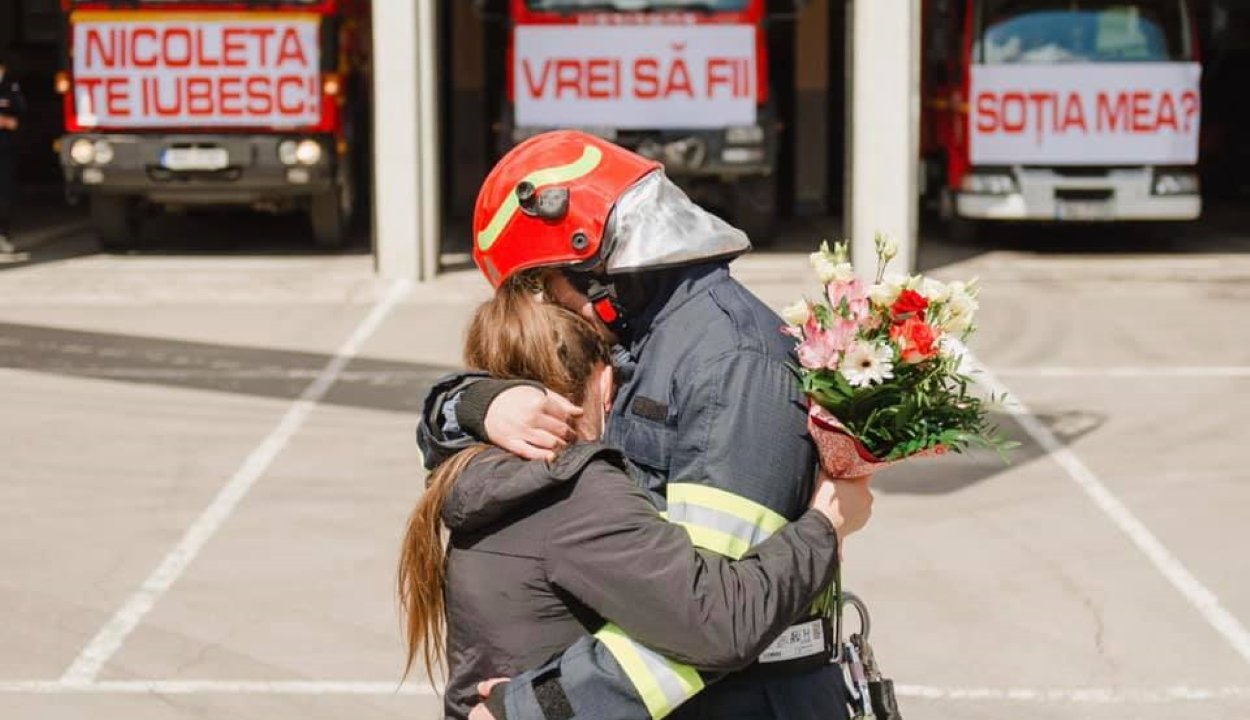 Igazán különleges lánykéréssel lepte meg kedvesét egy lánglovag szombaton a sepsiszentgyörgyi tűzoltóállomáson. Kollégáit is bevonta a romantikus filmeket idéző akcióba, a válasz pedig egy határozott "IGEN" volt. A nem mindennapi eseményről a belügyminisztérium számolt be Facebook-oldalán.