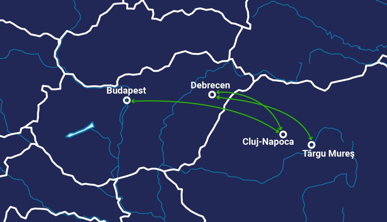 A repülőjáratok Budapestet Kolozsvárral, Debrecent pedig Kolozsvárral és Marosvásárhellyel kötik össze.