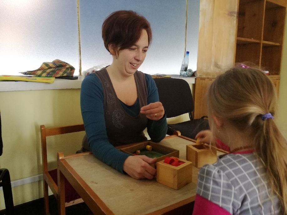 Mindegyik ebbe-abba a dobozba beskatulyázott gyereket – tanítóikon túl – azok a szakemberek ismerik, akik az egyéni fejlesztési tervet alkalmazzák. Ők az utazó gyógypedagógusok, ami annyit tesz, hogy ingáznak az iskolák között. Kevés kivételtől eltekintve a fejlesztő pedagógus egyben logopédus is, azaz a beszéd- és hangképzési zavarokkal is foglalkozik, esetenként pedig az iskolai tanácsadót helyettesíti. A megye városaiban 12 fejlesztő pedagógus dolgozik, továbbá 9 logopédus és 24 iskolapszichológus vagy iskolai tanácsadó, falun viszont csak négy fejlesztő pedagógus, a logopédusok közül senki, az ellátásból kiszorultaknak a megyei pszicho-pedagógiai központban nyújtanak tanácsadást.Beke Csilla gyógypedagógus a Csíki negyedi Gödri Ferenc-iskolában tevékenykedik. Csak azért nem ingázik az intézmények között, mert ott kerül annyi gyerek, amennyit egy gyógypedagógusnak fel kell vállalnia, azaz normális esetben 12, legtöbbször azonban ennél több, ahogy az az általa elmondottakból kitűnik.