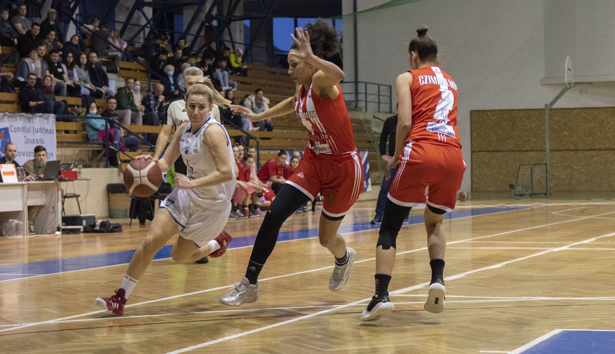A játéknap rangadóját az Andreona Lanay Keys fémjelezte aradiak kezdték erőteljesebben és csakhamar kisebb lépéselőnybe kerültek (13–7). Zoran Mikes időkérése azonban felrázta a háromszékieket, akik gyorsan kiegyenlítettek, majd Fraser és Pasic révén fordítottak, Ioana Ghizilă triplájával alakult ki az első szakasz 15–21-es eredménye. A folytatás is fordulatosra sikeredett, ugyanis a zöld-fehérek újfent megtorpantak, a Maros-partiak pedig Hadzovic és Keys kosaraival a 13. percben átvették a vezetést (25–23). Zoran Mikes ismét magához rendelte tanítványait, akik egy 8–0-s sorozattal visszaállították a korábbi különbséget, majd Jones és Pop is hozzátette a magáét, így húszpercnyi játék után már kilenc pont volt az előnyük (35–44). Szünet után is lendületben maradt a címvédő, Fraser és Jones szórták a kosarakat, 46–62-nél eldőltek a lényegi kérdések.