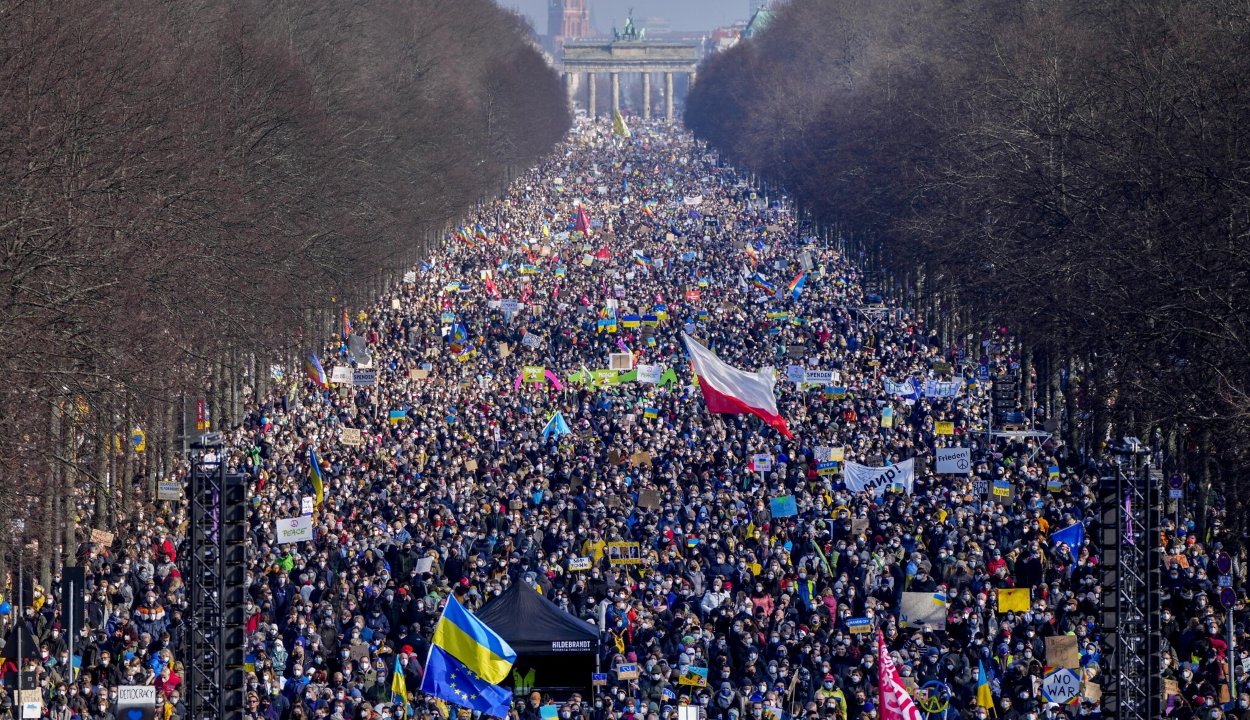 Berlinben több mint 100 ezren vonultak a Brandenburgi kapuhoz sárga-kékbe öltözve vagy ukrán zászlókat lengetve. A demonstrálók arra kérték a német kormányt, hogy lépjen fel határozottabban az orosz vezetéss.